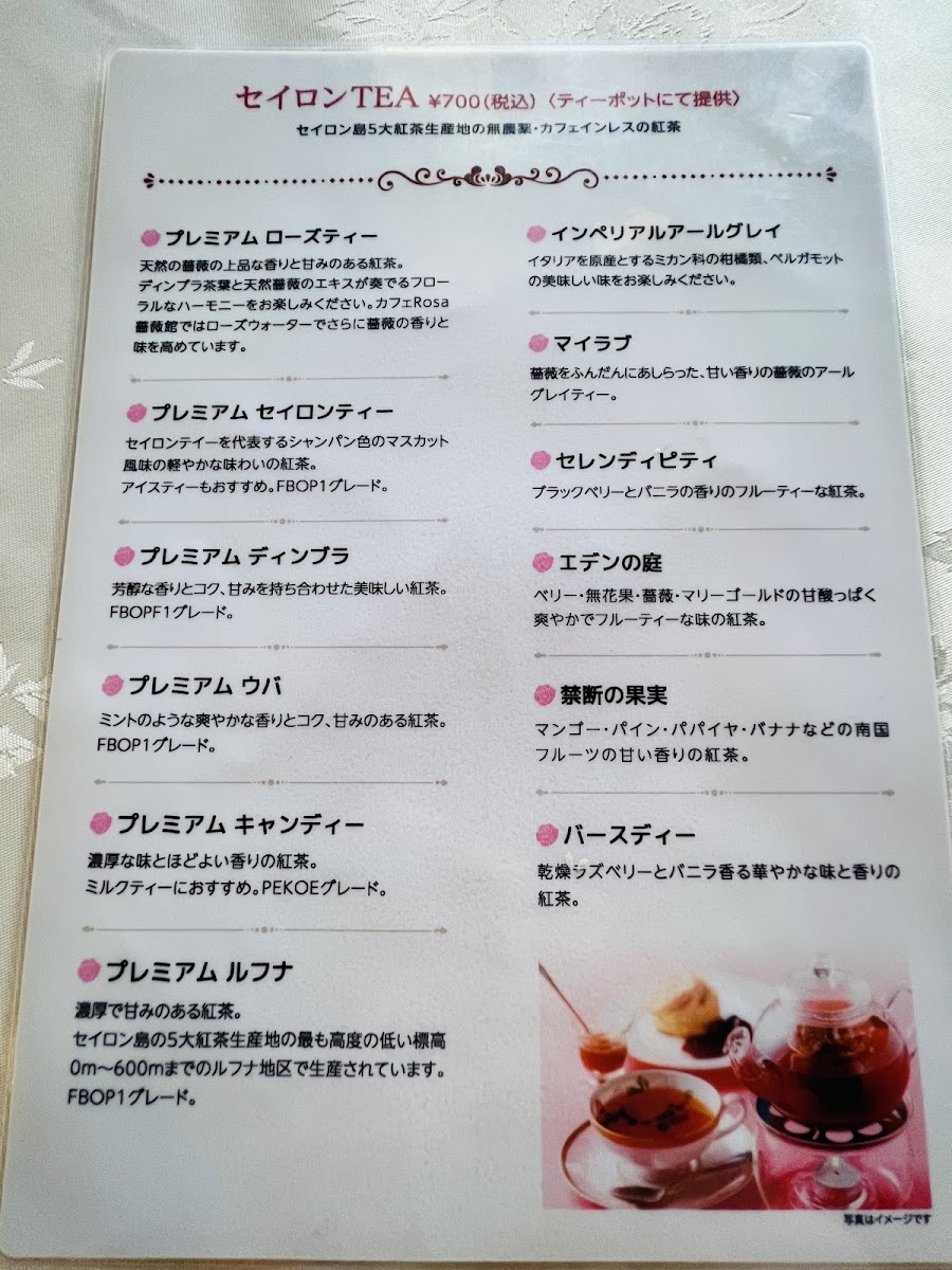 The food offerings include light meals and snacks, complemented by an assortment of desserts and sweets. Seasonal parfaits such as strawberry and rose-flavored varieties are notable highlights, alongside traditional items like soup, beef stew, and afternoon tea sets. These sets often feature multiple courses, including savory and sweet items such as macarons, mini desserts like matcha ice cream, scones, and other small pastries.